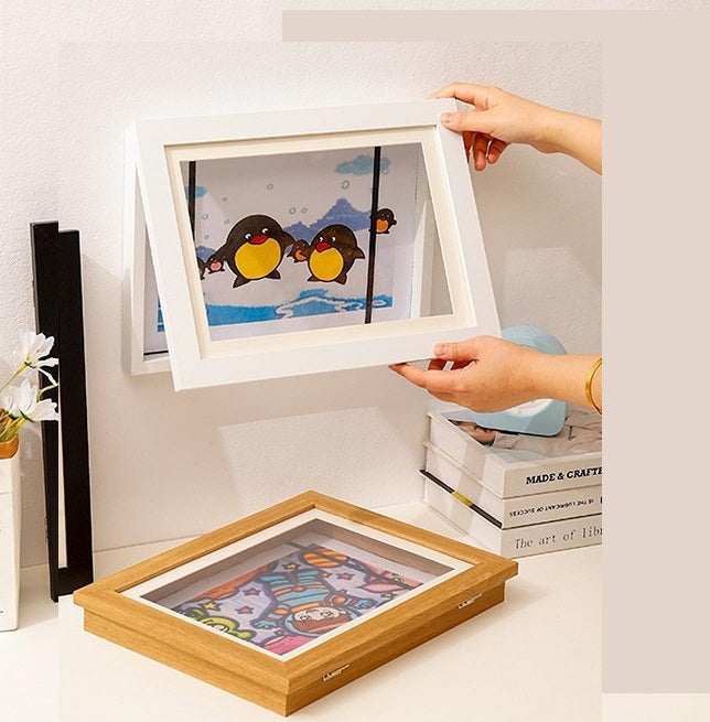 Cuadro para enmarcar las obras de arte de tu pequeño/a, en modelo marco, disponible en blanco o madera natural. Tamaño: 9" x 11.75" - Trae sus ganchos, y se puede usar vertical u horizontal.