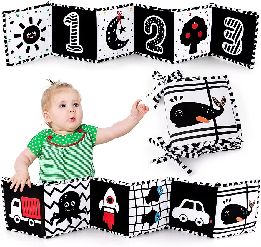 Tarjetas en acordeón, blanco y negro de tela para estimulación temprana (5x5)